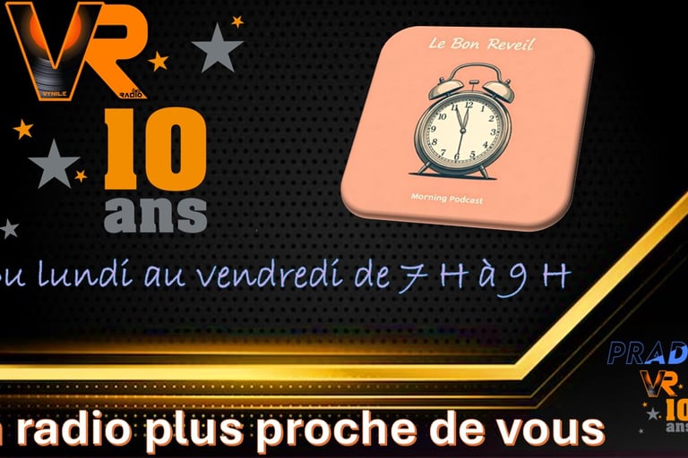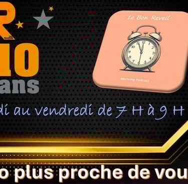 Chaque matin, entre 7 heures et 9 heures, réveillez-vous en musique grâce à l'émission "Le Bon Réveil". Cette émission dynamique vous offre un bon départ pour la journée avec une sélection musicale entraînante, agrémentée d'informations sur des rubriques variées. Vous découvrirez des surprises qui égayeront votre matinée et vous prépareront à affronter la journée qui vous attend. Les animateurs, pleins d'énergie et de bonne humeur, partagent des anecdotes et des conseils utiles pour bien commencer votre journée. Que vous soyez en route pour le travail ou en train de vous préparer à la maison, "Le Bon Réveil" est le compagnon idéal pour donner du peps à vos matins. Ne manquez pas cette occasion de savourer des moments de joie et de divertissement dès le début de la journée !